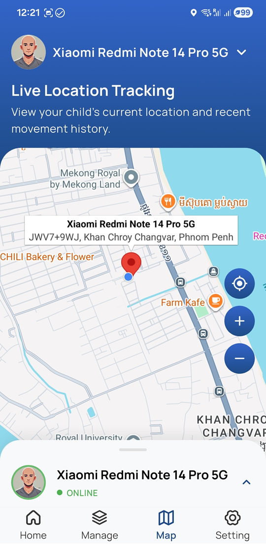 • Live location tracking