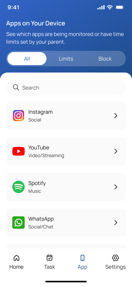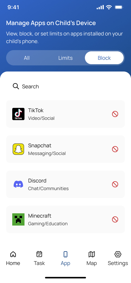 NetBlock អនុញ្ញាតឱ្យអ្នកទប់ស្កាត់កម្មវិធីភ្លាមៗ ឬកំណត់កាលវិភាគគ្មានអេក្រង់ តាមដានទីតាំង និងទទួលបានការជូនដំណឹងអំពីសុវត្ថិភាព។ វាសាមញ្ញក្នុងការប្រើ និងរចនាដើម្បីជួយកុមារបង្កើតទម្លាប់ដែលមានសុខភាពល្អ។